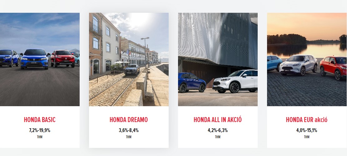 Jelen finanszírozási ajánlat kizárólag az Euroleasing Zrt. mint finanszírozást nyújtó társaság (továbbiakban: finanszírozó) forint alapú, változó és rögzített kamatozású, nyíltvégű és zártvégű pénzügyi lízing ajánlata, amely minimum 20% kezdő lízingdíj, valamint minimum 24 hónap és maximum 84 hónap futamidő esetén érvényes. A folyósítás feltétele a pozitív hitelbírálat. Az ügyfelet terheli zártvégű pénzügyi lízing esetén a gépjármű tulajdonjogának a futamidő végén történő megszerzésére tekintettel fizetendő visszterhes vagyonszerzési illeték, nyíltvégű pénzügyi lízing esetén fizetendő visszterhes vagyonszerzési illeték összegének 25%-a, mely a gépjármű forgalomba helyezésekor esedékes. A THM meghatározása az aktuális Üzletszabályzatban foglalt feltételek, illetve hatályos jogszabályok figyelembevételével történik, a feltételek változása esetén ennek mértéke módosulhat. A finanszírozó az Üzletszabályzatában feltüntetett díjak érvényesítésére jogosult, továbbá a finanszírozással kapcsolatos, harmadik személy részére fizetendő költségeket (pl. hitelbiztosítéki nyilvántartásba vételi díj: 7.000 Ft) jogosult az ügyfélre tovább hárítani. THM: 7,2%-19,9%. A THM nem tükrözi a finanszírozás kamatkockázatát és nem tartalmazza a casco biztosítás díját. A finanszírozás teljes futamideje alatt Casco biztosítás fenntartása szükséges. Minimális finanszírozási összeg: 3.000.000 Ft. Az akció minden új Honda gépjárműre érvényes. A tájékoztatás nem teljes körű és nem minősül szerződéses ajánlatnak, továbbá a finanszírozó fenntartja a finanszírozási kondíciók változtatásának, valamint az akció visszavonásának jogát. Az akció visszavonásig tart. Jelen ajánlatban meghatározott feltételek lejárat időpontjáig benyújtott finanszírozási kérelmek esetén alkalmazandók, amennyiben az ügyfél megfelel a bírálati feltételeknek. Az ajánlatban szereplő finanszírozási kondíciók érvényességét befolyásolja a kereskedő partnereknél rendelkezésre álló készlet.