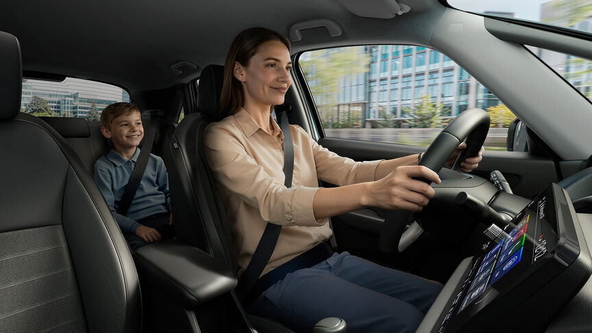 A prémium bőrkormány gyengéd meleget sugároz a könnyed vezetési élmény érdekében. Bizonyos felszereltségi szintek esetén érhető el.